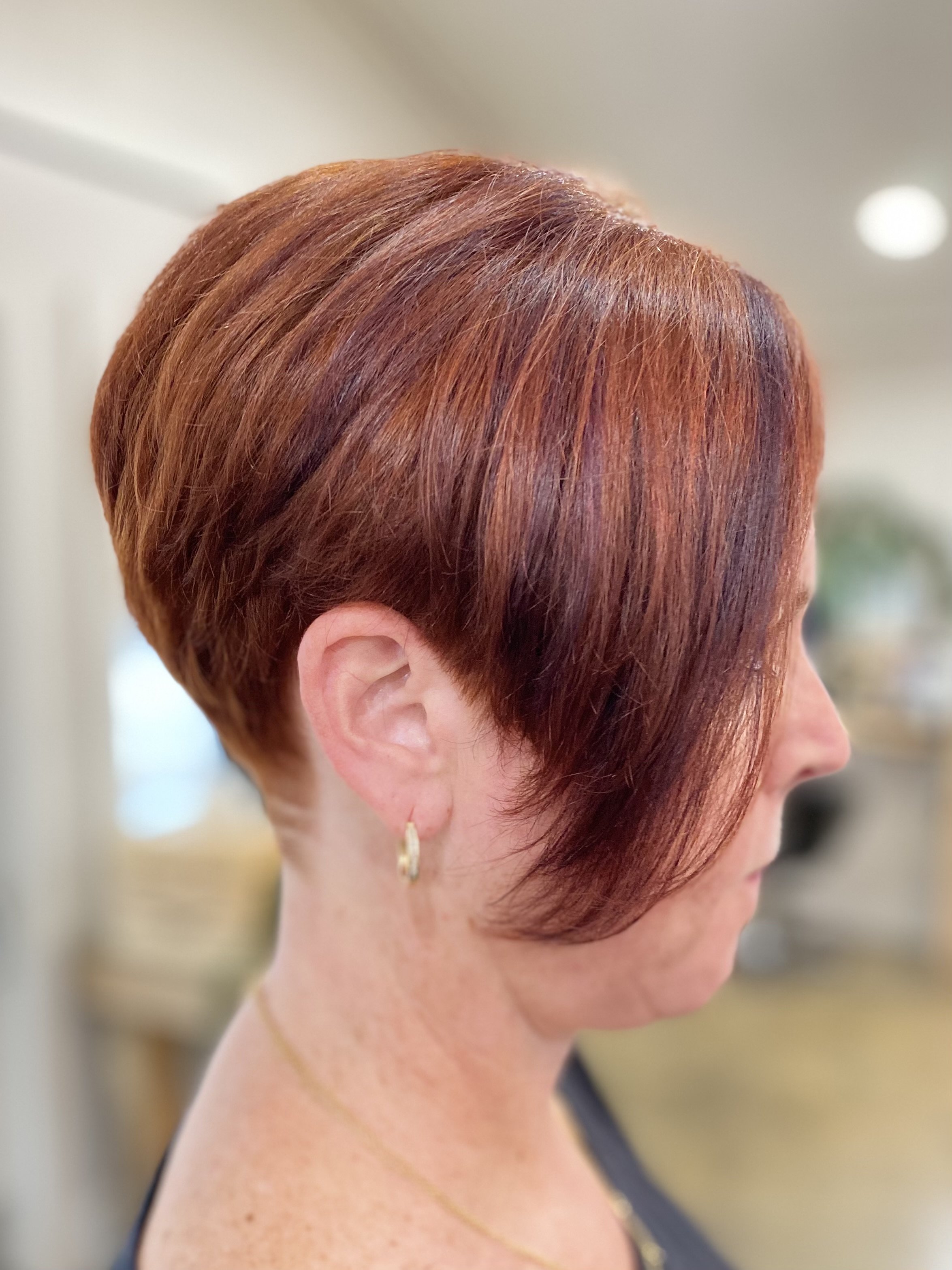 While I enjoy continuing to learn and stay current with new techniques and styles, my specialties are grey coverage and precision haircuts. I love creating polished, flattering looks that are both timeless and easy to maintain.